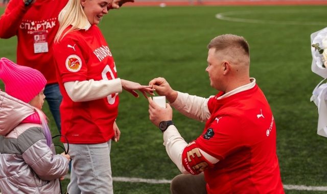 Романтическое событие произошло прямо посреди футбольного матча на костромском стадионе «Урожай»: молодой человек попросил девушку стать его женой. Это случилось…