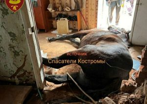 Спасатели вытащили из ямы испуганную лошадь под Костромой