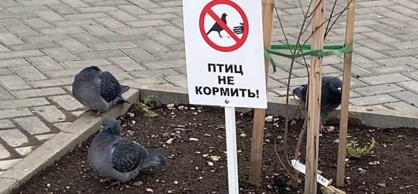 Бандитский голубь требует кормить птиц возле костромского ТЦ