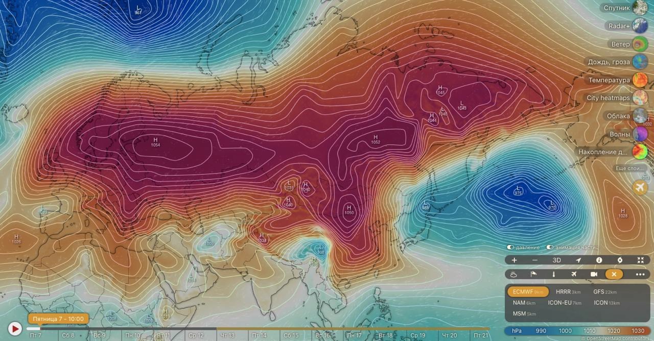 От Дальнего Востока до Британских островов — так 7 февраля на синоптических картах выглядит антициклон невероятных размеров, протянувшийся более чем на 8 тысяч километров с запада на восток. В его западном ядре, которое расположилось как раз над европейской частью России, атмосферное давление превышает 791 миллиметр ртутного столба.