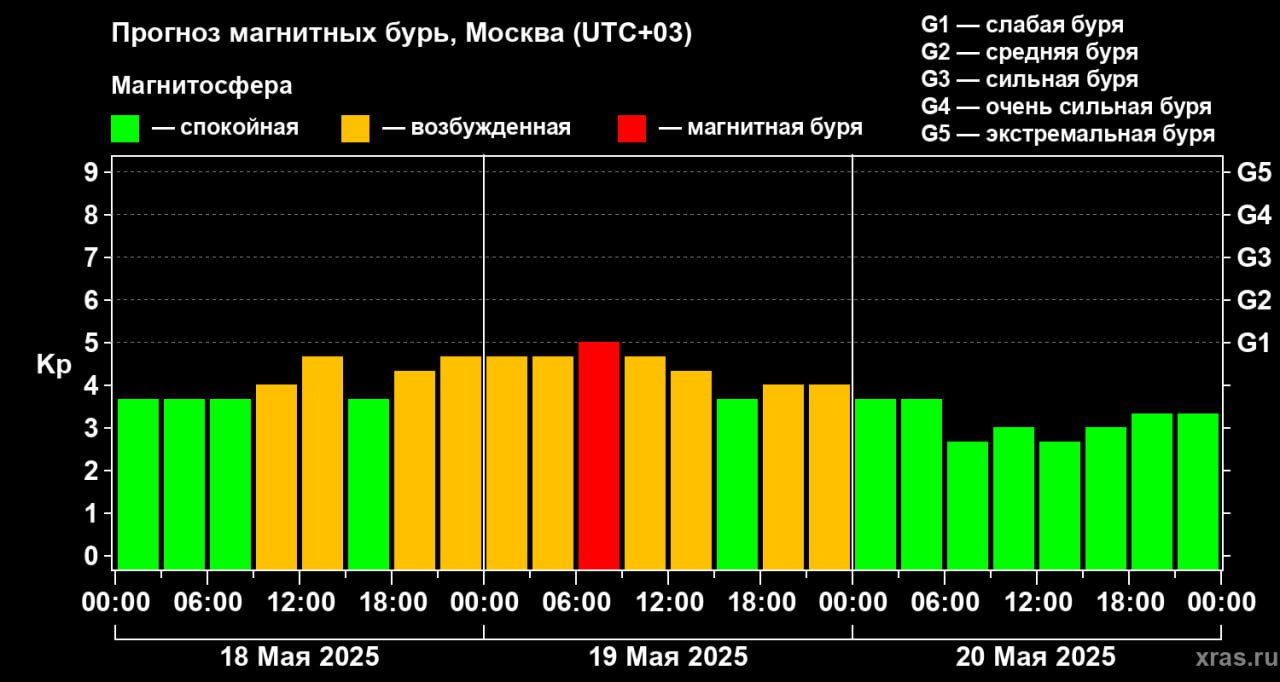 Это означает, что большую часть воскресенья магнитосфера Земли будет находиться в слабовозмущенном состоянии.