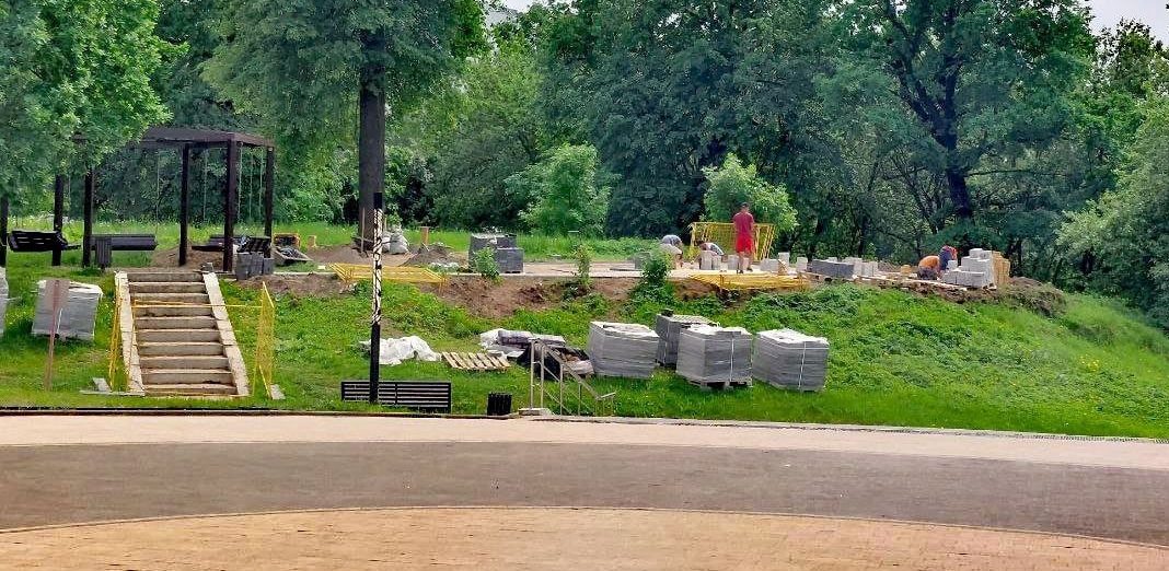 Рабочие активно укладывают там новенькую тротуарную плитку. Поблизости ждут своего часа другие строительные материалы. По неофициальным данным, в сквере, который удачно расположен на возвышенности, появится еще одна городская смотровая площадка.