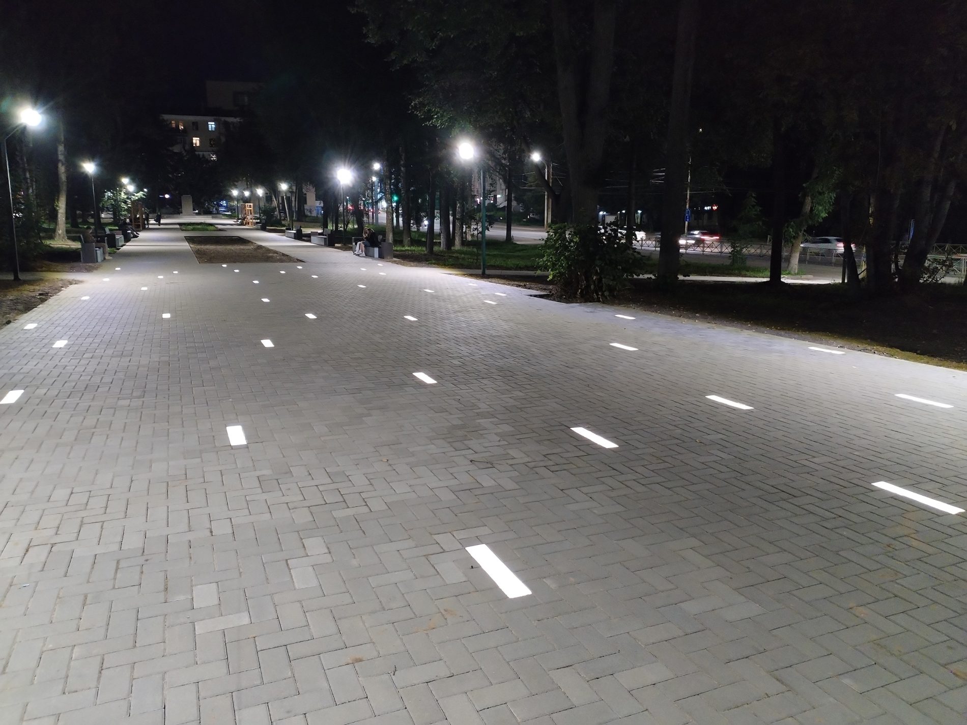 Без внимания не осталась и тротуарная плитка. Ее особенность в том, что некоторые элементы подсвечиваются. Они служат дополнительным освещением в темное время суток.