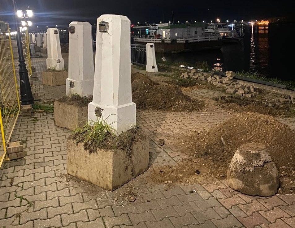 Покосившиеся ограждения у Волги, которые почти все лето наводили грусть на туристов и горожан, сейчас начали активно выправлять.