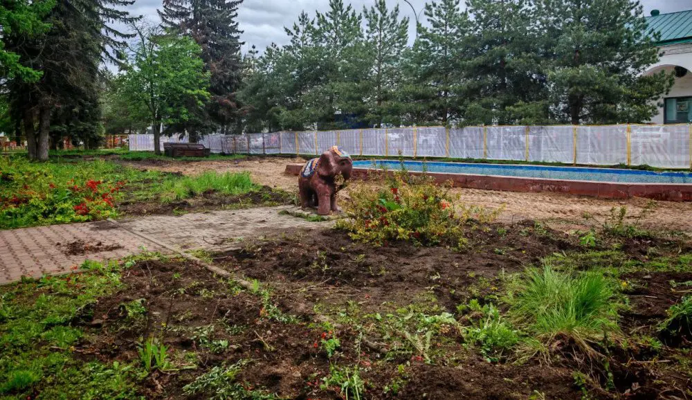 Подрядная организация выполнят все работы строго по графику. Заминка может случиться по причине задержки поставки игрового оборудования. Планируется, что обновленный сквер со слоником откроют до 1 сентября.