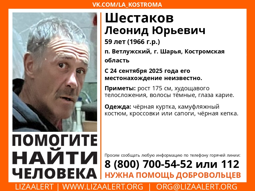 59-летний житель Шарьи Леонид Шестаков пропал еще 24 сентября.