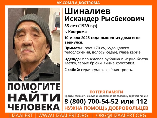 85-летний Искандер Шиналиев вышел из дома 10 июля и не вернулся.