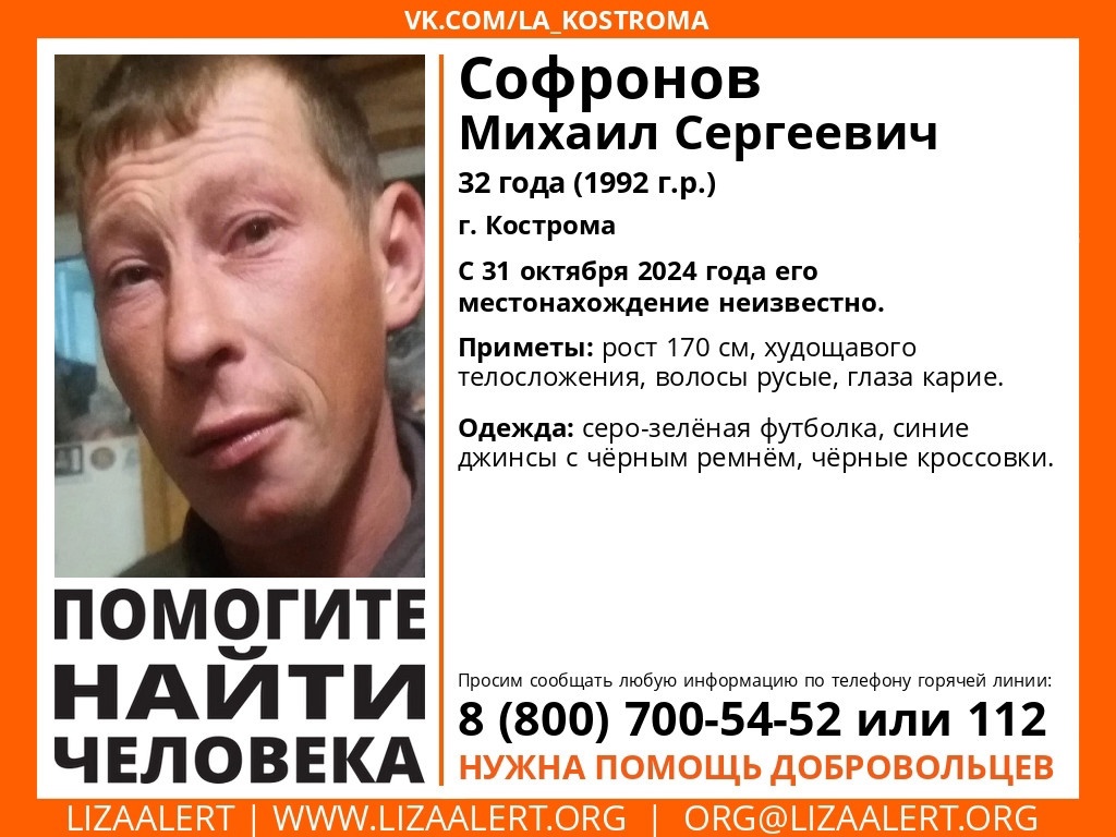 32-летний житель областного центра Михаил Софронов ушел из дома 31 октября.