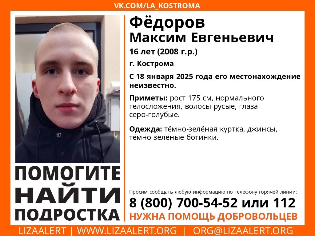 Максим Федоров ушел из дома 18 января, с тех пор его никто не видел.