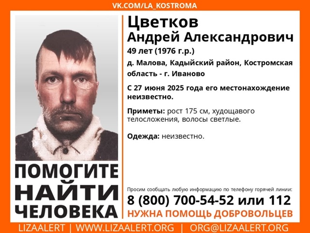 49-летнего Андрея Цветкова в последний раз видели 27 июня.