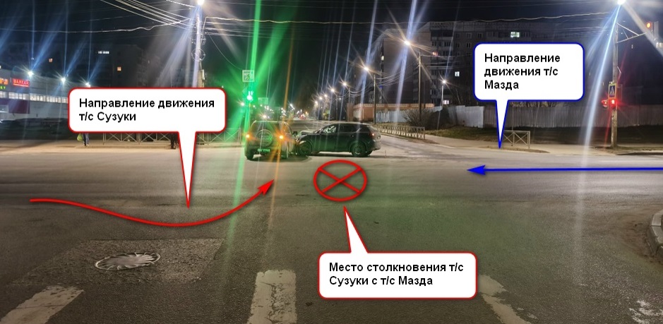 20-летний водитель «Сузуки» на повороте не пропустил «Мазду», которой управляла 30-летняя женщина. Последняя получила травмы.