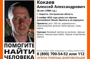 Его местонахождение неизвестно уже четыре дня. 3 ноября в Нерехте 36-летний Кокаев Алексей Александрович уехал на черном автомобиле «Nissan Maxima»…