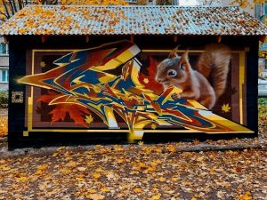 Новый осенний стрит-арта появился в областном центре за Волгой: белка в осенних листьях украсила один из гаражей. Уличные работы и…