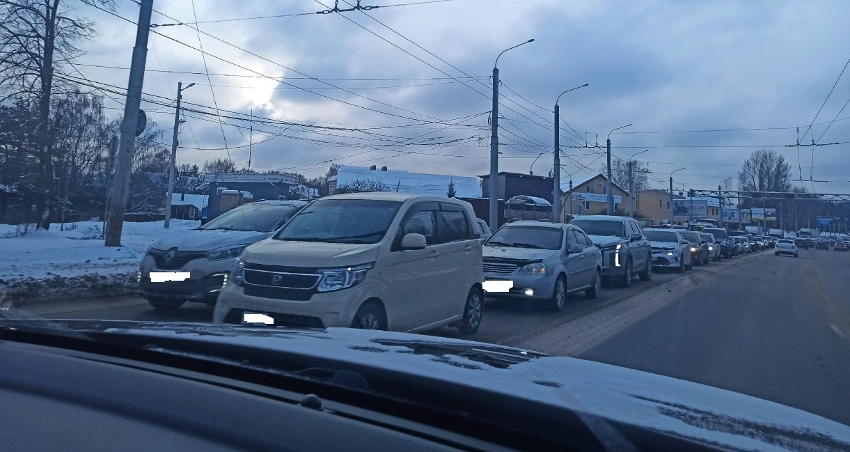Итог закономерен: и мост стоит, и за мостом огромная пробка.