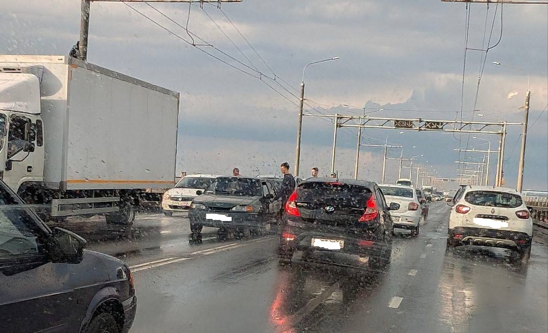 Машины столкнулись на левой полосе путепровода — на середине моста и на съезде.
