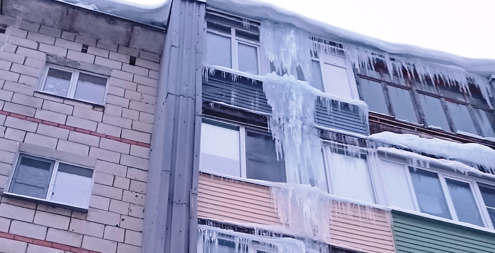 На каждом балконе зияют острые ледяные «пики», которые угрожающе нависают над тротуаром. Местные жители опасаются проходить рядом со стеной дома, так как гигантские сосульки создают реальную угрозу для прохожих.