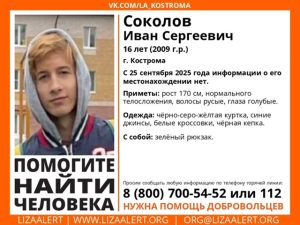 Иван Соколов ушел из дома 25 сентября, с тех пор неизвестно, где он находится. Приметы парня: рост 170 см, нормального…