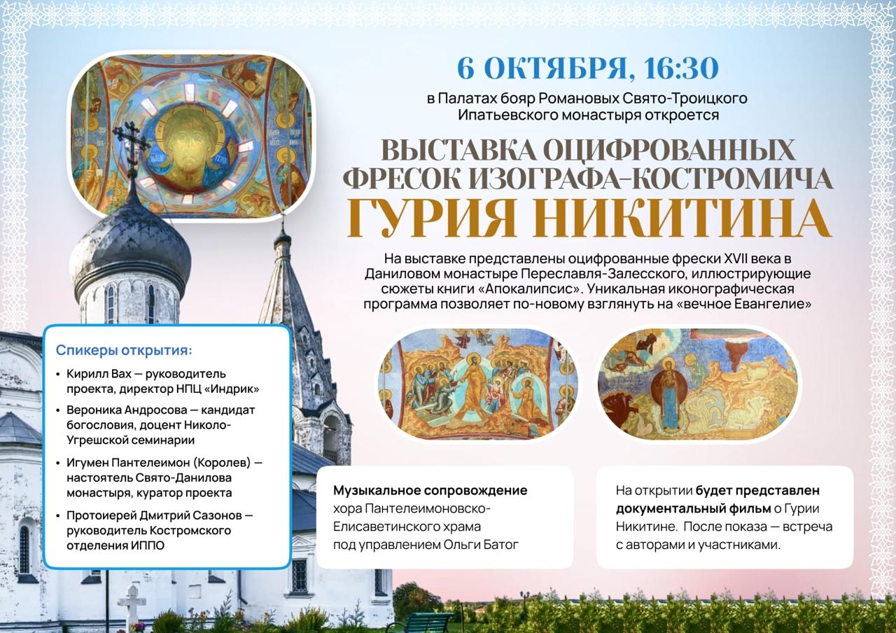 Завтра, 6 октября в 16:30 в Костроме откроется выставка оцифрованных фресок выдающегося изографа-костромича Гурия Никитина.
