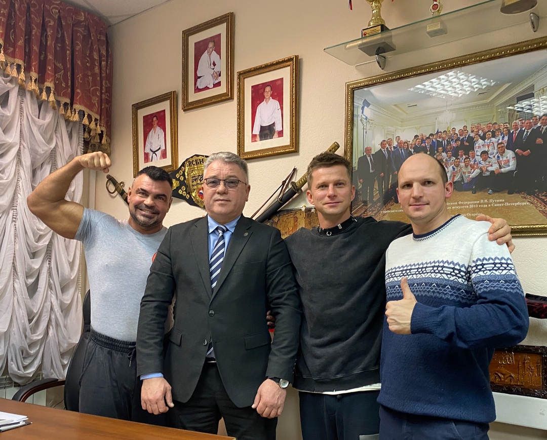 Роман Курцын встретился с исполнительным директором РСБИ Рамилем Габбасовым. С собой актер привел представителя всестилевого каратэ Дмитрия Зеленкова и руководителя компании «ЯРФИЛЬМ», каскадера Анатолия Вулканова.