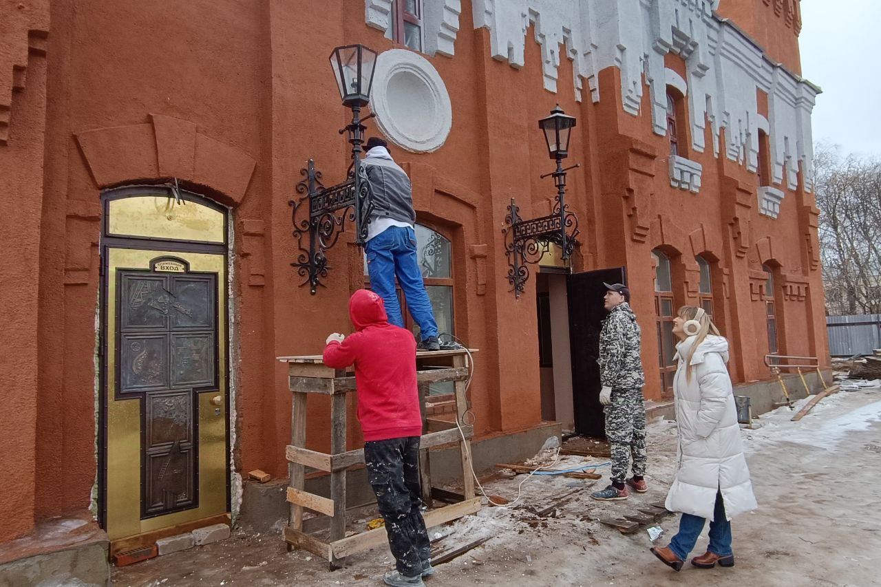 Екатерина Бабкина, специалист по реставрации и сохранению исторических зданий в Костроме, рассказала, что именно выполняет подрядчик. Накануне на фасаде областного театра кукол появились два новых фонаря. Бабкина отметила, что установка этих объектов является важным шагом в процессе возращения культурному учреждению его первоначального величия.