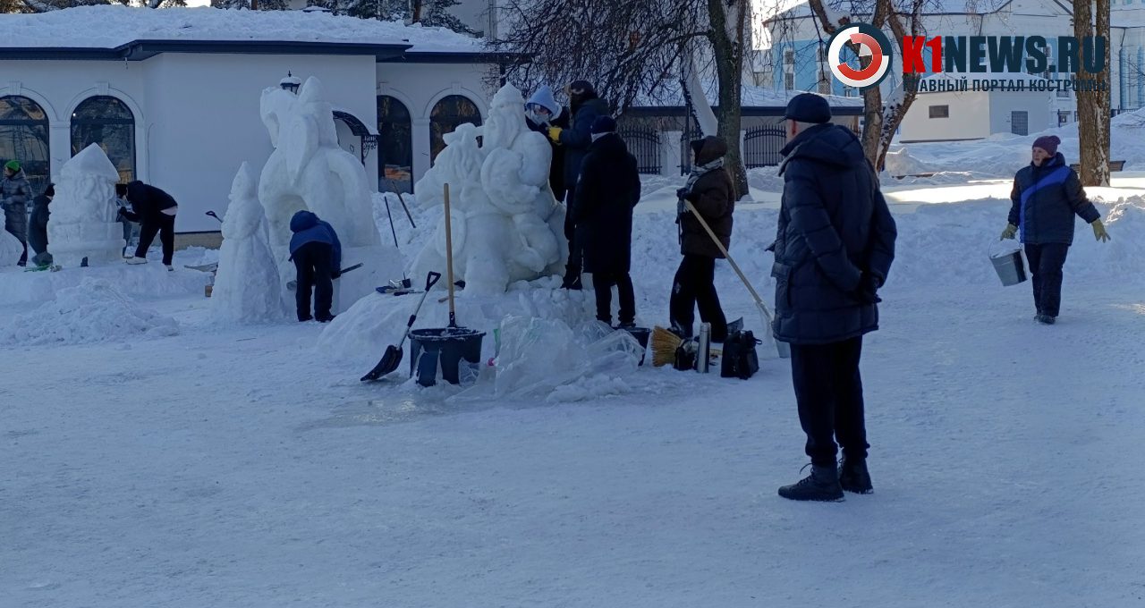 В Центральном парке Костромы редкий для будней шум: не от машин и не от музыки, а от бензопил, стамесок и лопат. Здесь в самом разгаре фестиваль снежных и ледовых скульптур «Кострома — зимняя сказка». Мастера работают с утра до вечера, не обращая внимания на морозы.