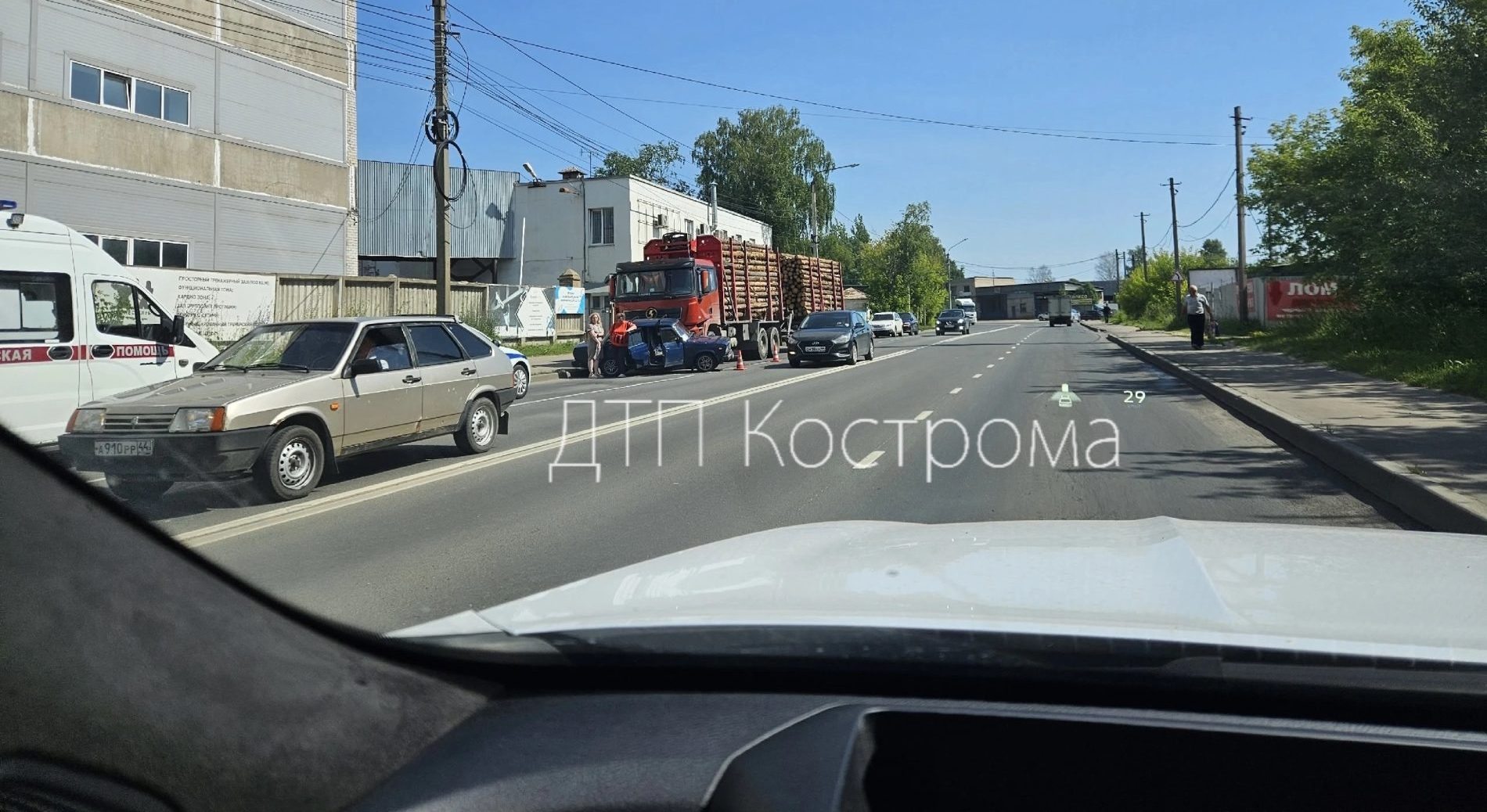 Грузовой автомобиль марки «Шекман», перевозивший бревна, врезался в легковушку ВАЗ. По предварительной информации, машина выезжала с прилегающей территории и не успела вовремя затормозить перед большегрузом. Сторона, где находится водитель, частично оказалась зажата грузовиком. По словам очевидцев, серьезных травм никто не получил.