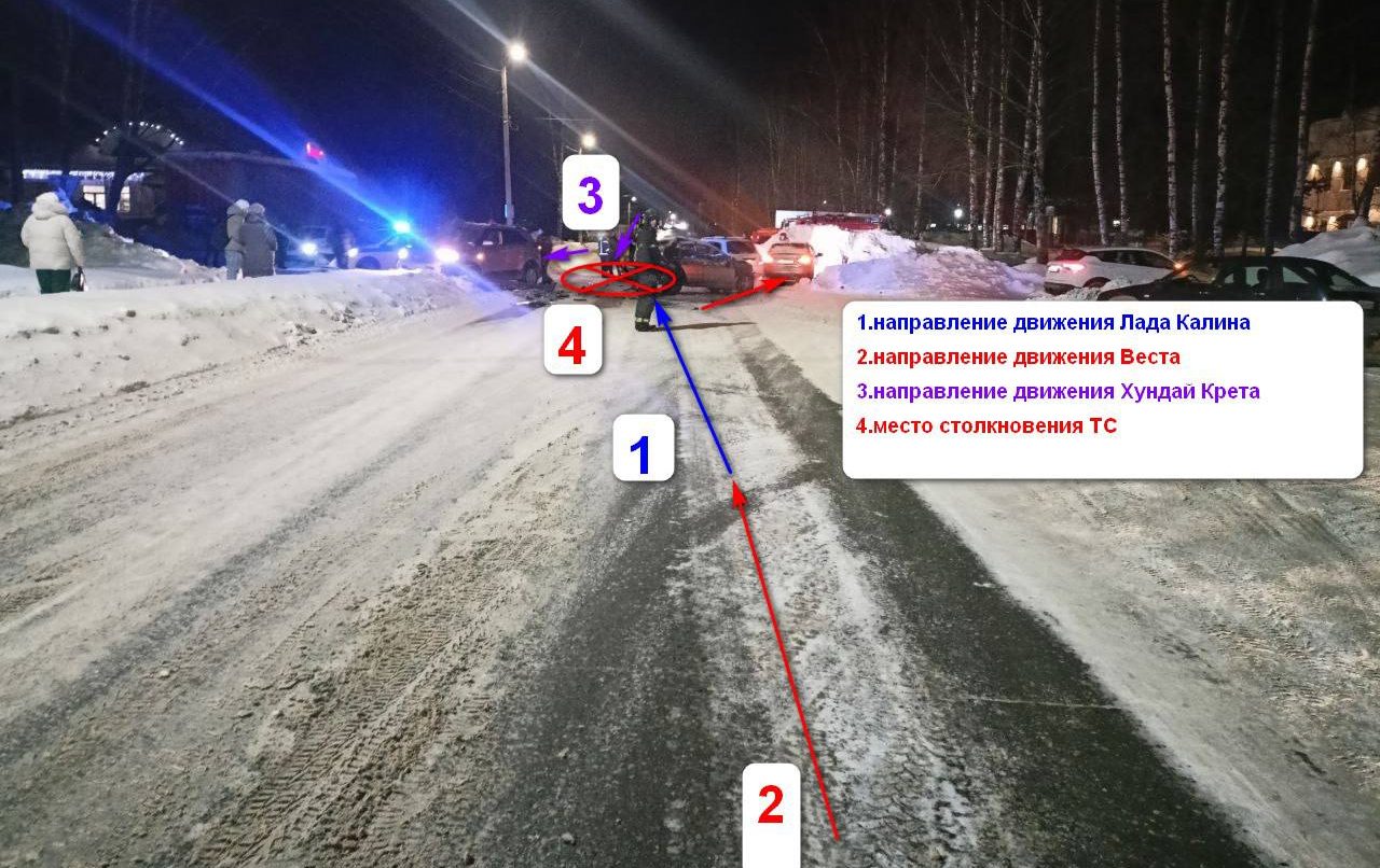 45-летний водитель, находясь за рулем автомобиля марки «Лада Веста», врезался в остановившуюся для совершения левого поворота машину «Лада Калина», которой управлял 33-летний мужчина. От сильного удара «Калина» выехала на встречную полосу, где столкнулась с иномаркой «Хендай Крета» под управлением 53-летнего водителя.