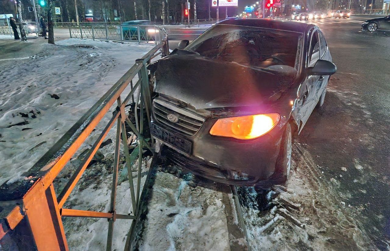 31-летний водитель автомобиля «Мерседес-Бенц», находясь на регулируемом перекрестке, нарушил правила дорожного движения. Он проигнорировал красный сигнал светофора и, повернув налево, не уступил дорогу легковушке «Хендай Элантра» под управлением 24-летнего молодого человека. В результате столкновения вторая машина врезался в дорожное ограждение.