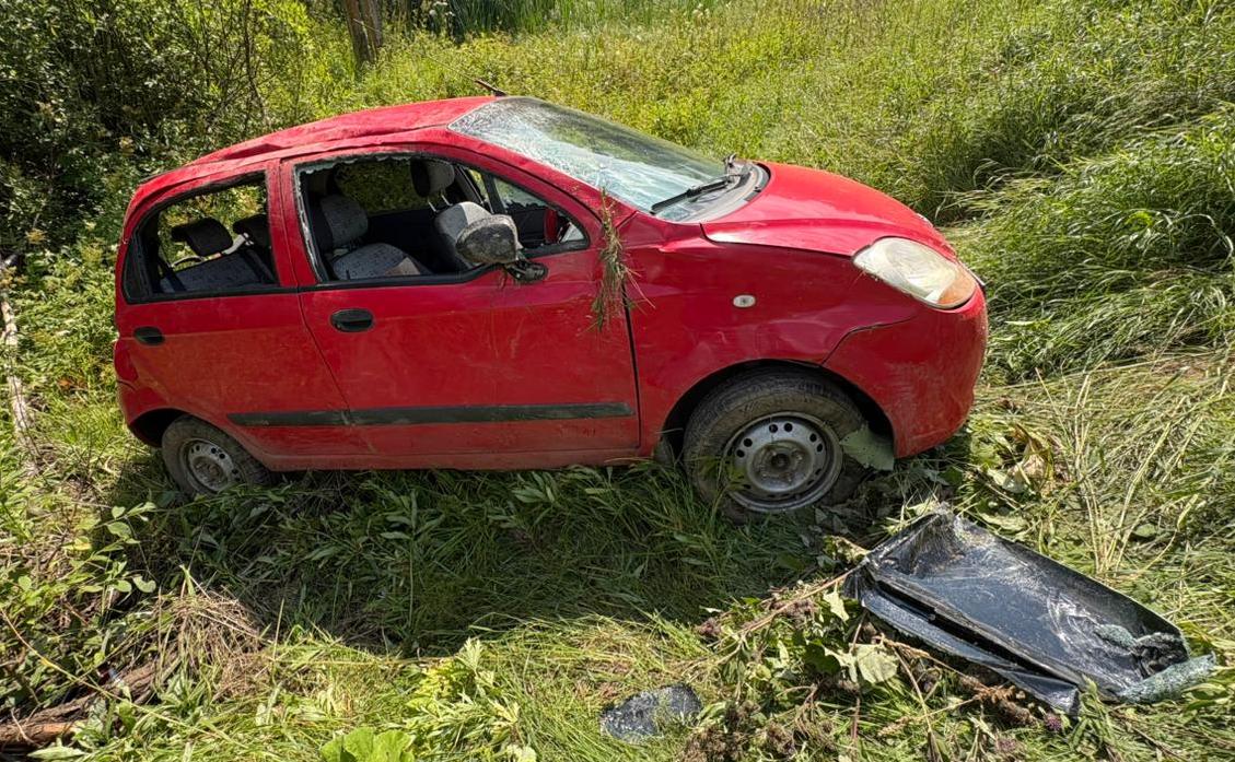 38-летняя женщина-водитель машины «Шевроле Спарк» выбрала скорость, не соответствующую конкретным условиям движения. Из-за этого машину занесло, и она угодила в кювет, а там опрокинулась.
