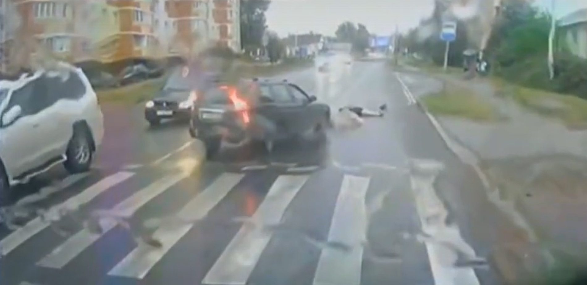 От удара 73-летнюю женщину отбросило на несколько метров с пешеходного перехода. Пару минут она лежала без движения. Потом водитель легковушки и подбежавшие на помощь прохожие подняли ее и повели к машине. Пострадавшая шла на своих ногах, но очень медленно.