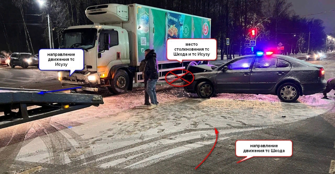Вчера 30 ноября в 16.00 в областном центре на проспекте Мира около дома № 155 73-летний водитель на «Шкоде», поворачивая налево на регулируемом перекрестке, не уступил дорогу грузовику «Исузу» с 20-летним водителем и столкнулся с ним.
