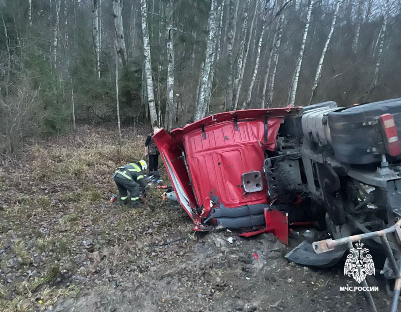 На трассе в районе деревни Аносово Мантуровского округа столкнулись два грузовика. Водитель одного из автомобилей оказался зажат в кабине.