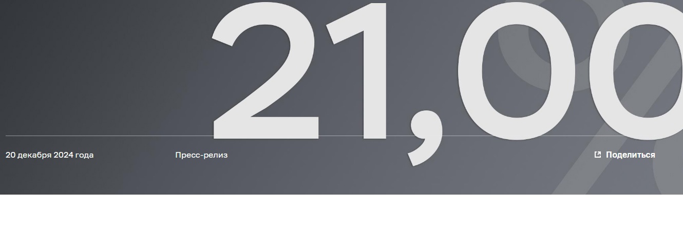 Совет директоров Банка России 20 декабря 2024 года принял решение о сохранении ключевой ставки на уровне 21,00% годовых.