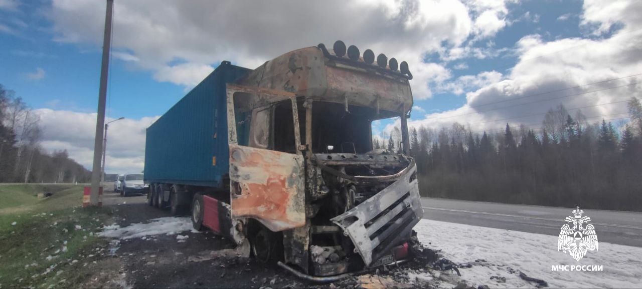По данным спасателей, во время движения загорелся грузовой автомобиль марки «Сканья».