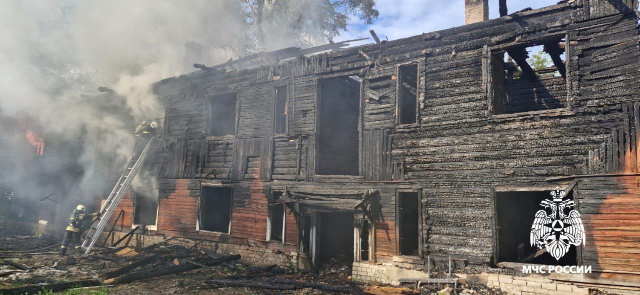 Когда на место по звонку очевидцев прибыли пожарные, двухэтажный деревянный дом горел открытым пламенем. Оценив обстановку, спасатели пришли к выводу, что угрозы для соседних зданий нет.