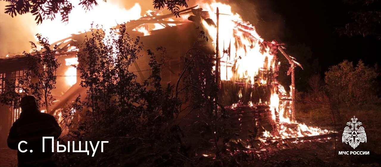 Дознаватели МЧС России устанавливают причины возгорания частного жилого дома на улице Молодежной в Пыщуге. Пожар произошел 26 августа в 20:43. Огонь уничтожил кровлю, здание полностью выгорело изнутри. Ничего не осталось и от хозяйственного двора.