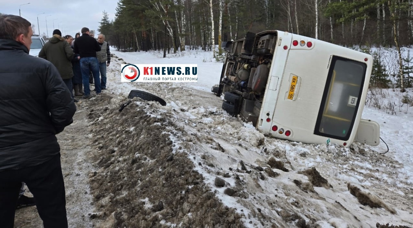 В результате автобус резко развернуло боком к проезжей части, после чего вынесло на обочину, где он перевернулся.
