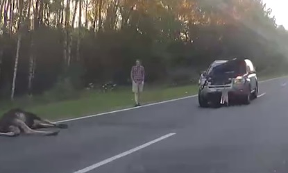Следующей жертвой стал лесной великан, который выбежал на трассу, ведущую из Костромы в Нерехту.