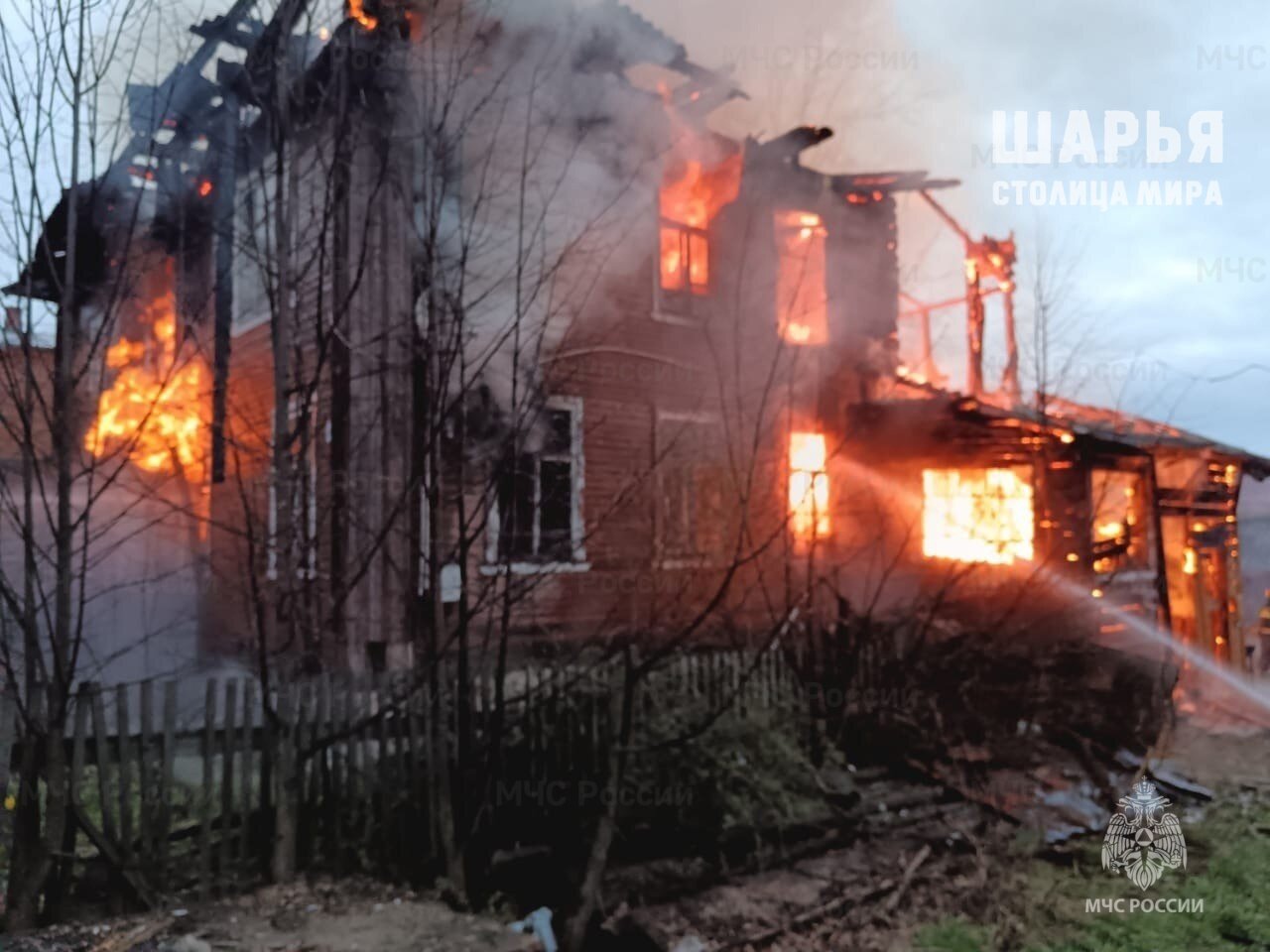 Около семи вечера в Шарье н Октябрьской вспыхнул двухэтажный жилой дом.