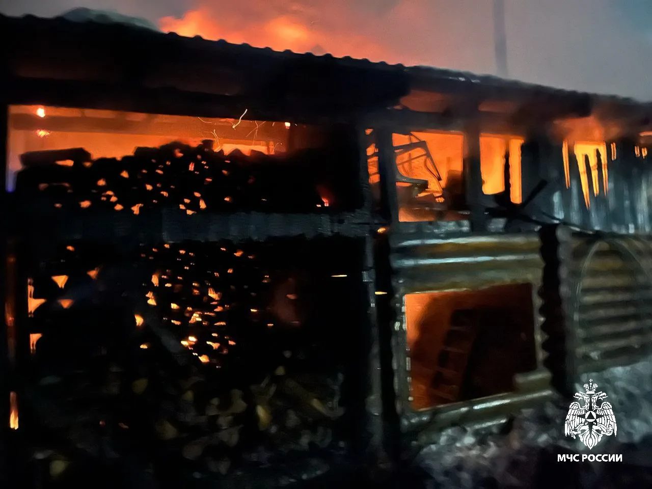 Выгорело внутри здания, повреждены кровля и потолочные перекрытия по всей площади дома с пристроенными к нему дровяником и баней. Общая площадь пожара составила 96 кв.м.