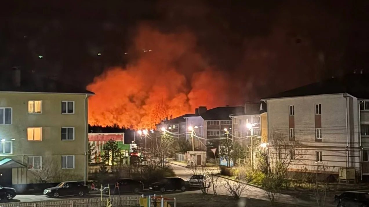 По словам очевидцев, пламя движется в сторону приюта для животных «Белый Бим» в деревне Коряково.
