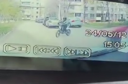 Днем 12 мая другой ребенок — судя по всему, еще младше, — прикатился на двухколесном коне прямо к свернувшему на перекрестке автомобилю. Случилось все в районе дома №30 на Боровой.
