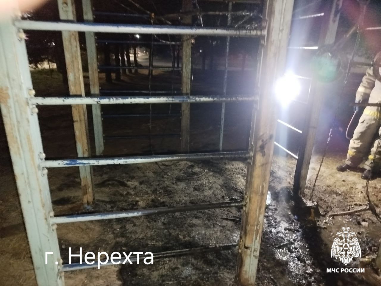 Один из них произошел вечером 1 октября в Нерехте. Очевидцы сообщили, что на улице Никитской горит спортивная площадка. Через 18 минут огонь был полностью ликвидирован спасателями.