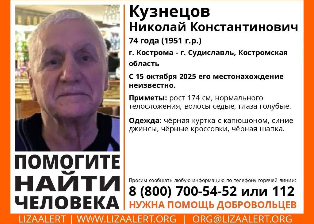 С 15 октября местонахождение 74-летнего мужчины неизвестно.