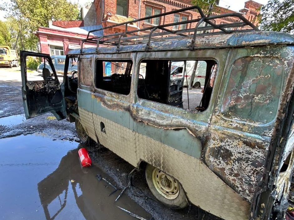 Там во время движения загорелся УАЗ-«буханка». Потушить пламя самостоятельно владелец автомобиля не смог и вызвал спасателей, которые быстро все потушили.