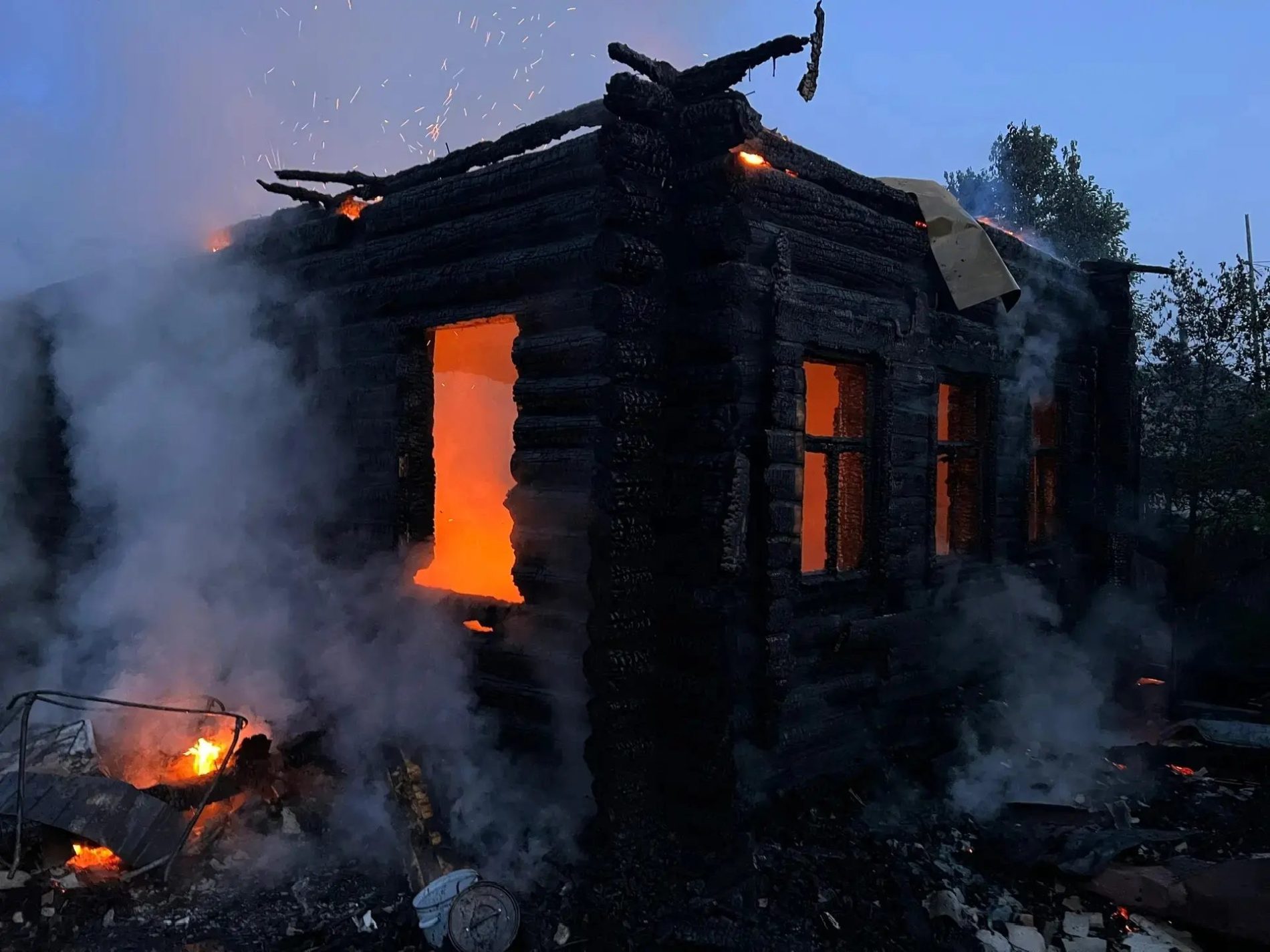 Пожарные потушили дом, но от него мало что осталось. Хозяин, которого разбудил треск горящего дерева, чудом успел спастись.
