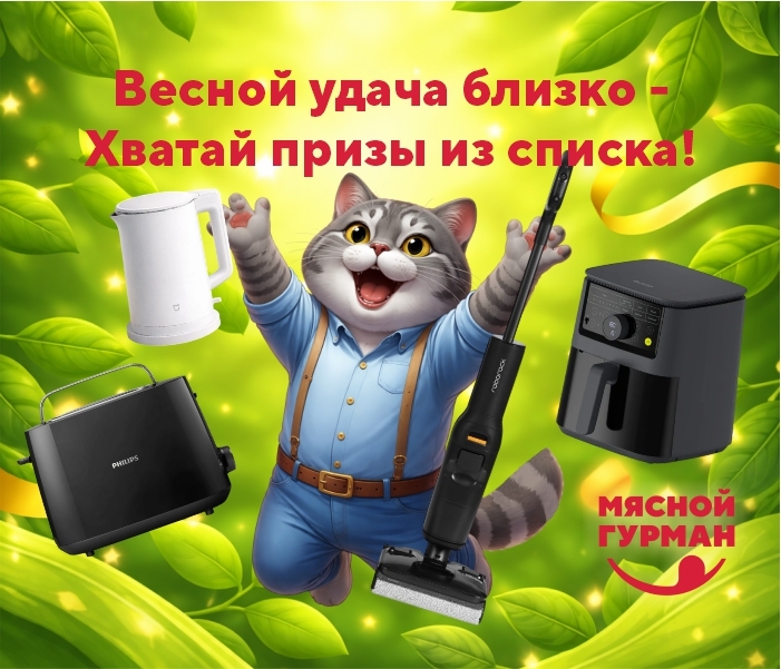 Компания «Мясной Гурман» объявила о старте уникальной акции «Весенняя Хватайка!», которая продлится до 26 апреля 2026 года. У особо активных покупателей есть шанс выиграть качественную технику от известных брендов!