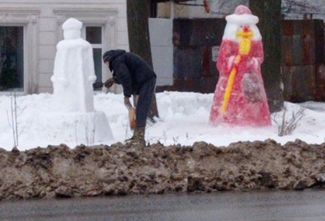 Там на глазах у прохожих какой-то добрый человек лепил зимнего волшебника и его волшебную внучку.