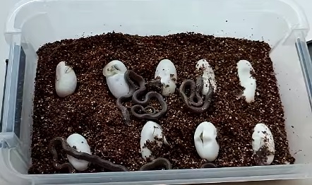 На свет 5 июля появились маленькие змейки — длинноносые полозы.