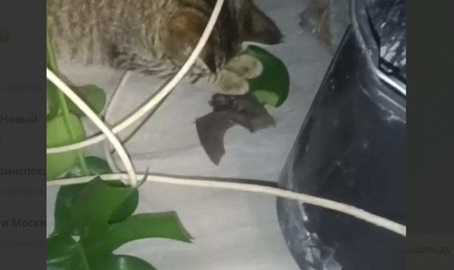 Обычно эти ночные крылатые животные попадают в жилые помещения случайно. Скорее всего, маленький «вампир» охотился за насекомыми и увлекся, но сам чуть не стал добычей для кота, который живет в этой квартире.